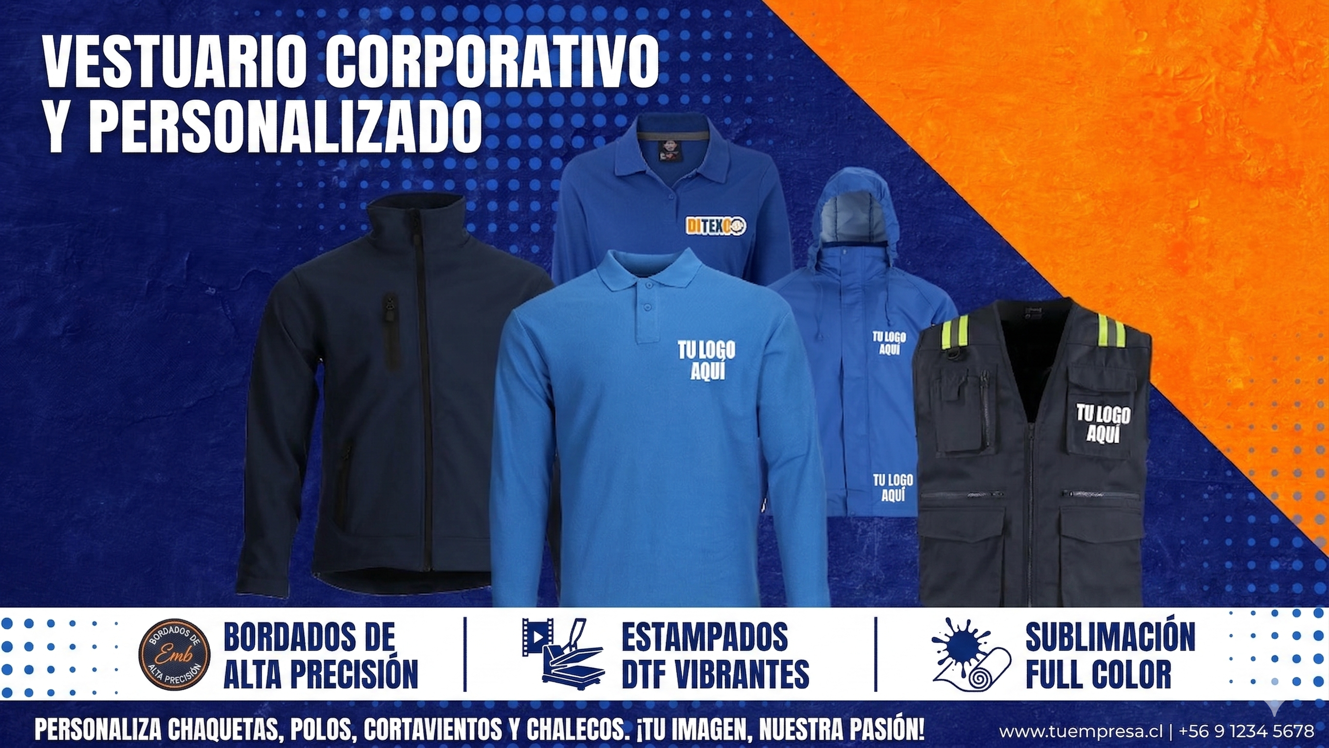 Personalizamos y damos identidad a tu vestuario corporativo mediante impresión DTF y bordado de logos, además contamos con venta presencial en tienda.