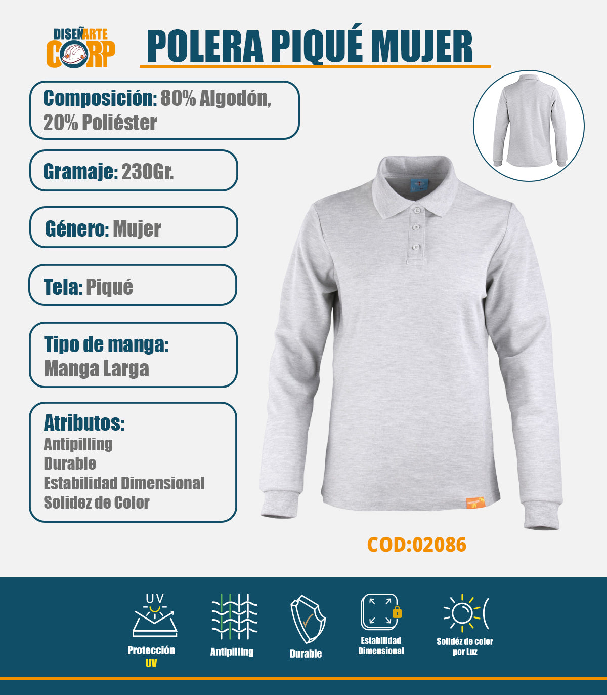 Elaborada con un 80% de algodón y un 20% de poliéster, esta polera asegura una durabilidad excepcional para acompañarte en todas tus actividades. La tecnología antipilling evita la formación de bolitas, manteniendo una apariencia impecable incluso después de numerosos lavados. La estabilidad dimensional garantiza que la prenda conserve su forma original lavado tras lavado, mientras que la solidez de color asegura que los tonos se mantengan vibrantes y fieles. Equipada con protección UV, esta polera proporciona una capa adicional de defensa contra los rayos del sol, ideal para actividades al aire libre. Resistencia alta calidad, materiales premium y diseño duradero.